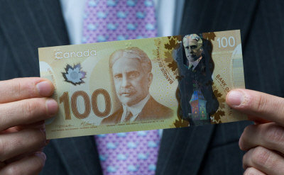 加拿大央行(The Bank of Canada)周一(20日)宣布,以特別聚合物制成的面額為100元的新幣將于今年11月發(fā)行并開始流通,這種塑膠鈔票幾乎難以偽造,而且更加經久耐用。