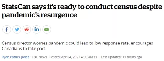 收到這封郵件,意味著五年一度的加拿大人口普查要開(kāi)始了。加拿大統(tǒng)計(jì)局宣布,盡管對(duì)未來(lái)幾個(gè)月的疫情發(fā)展感到擔(dān)憂,但是仍計(jì)劃在今年5月份展開(kāi)新一輪人口普查。