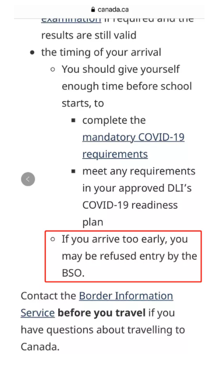 留學(xué)生在早于開(kāi)學(xué)前四周前往加拿大,可能被拒絕入境或拒絕登機(jī)!