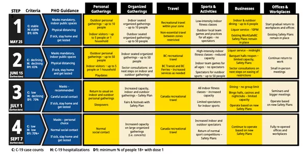 從目前的數(shù)據(jù)看,BC早已超越了該接種目標(biāo),省府已官宣正式進(jìn)入第二階段重啟。如果未來幾周BC省能夠維持良好表現(xiàn),省政府將會(huì)宣布在7月1日進(jìn)入第三階段解封,允許全國(guó)旅游。而隨著病例數(shù)的繼續(xù)下降,到9月7日,最后的限制取消,可能BC就將宣布疫情終結(jié),生活回歸正常了。