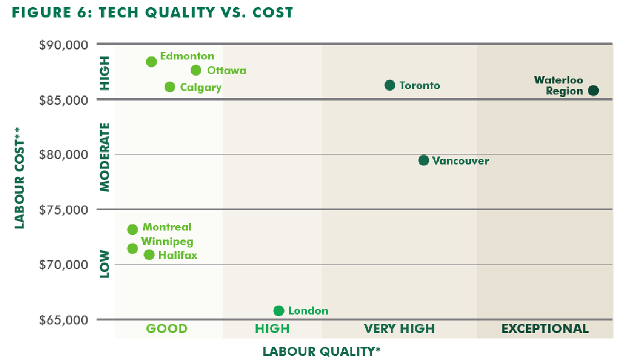 ♦ 縱觀加拿大,滑鐵盧地區(qū)在科技人才質(zhì)量和雇員收入兩個(gè)維度上均處在加拿大頂尖水平。就業(yè)環(huán)境和收入決定一切,這也是為什么滑鐵盧地區(qū)是大多數(shù)學(xué)生讀工程IT相關(guān)專業(yè)的首選?;F盧就業(yè)市場(chǎng)55%的勞動(dòng)力是康尼斯托加理工學(xué)院的畢業(yè)生!
