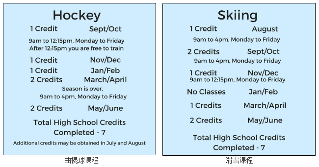 下圖是TEA 11、12年級曲棍球和滑雪課程的開課樣本: