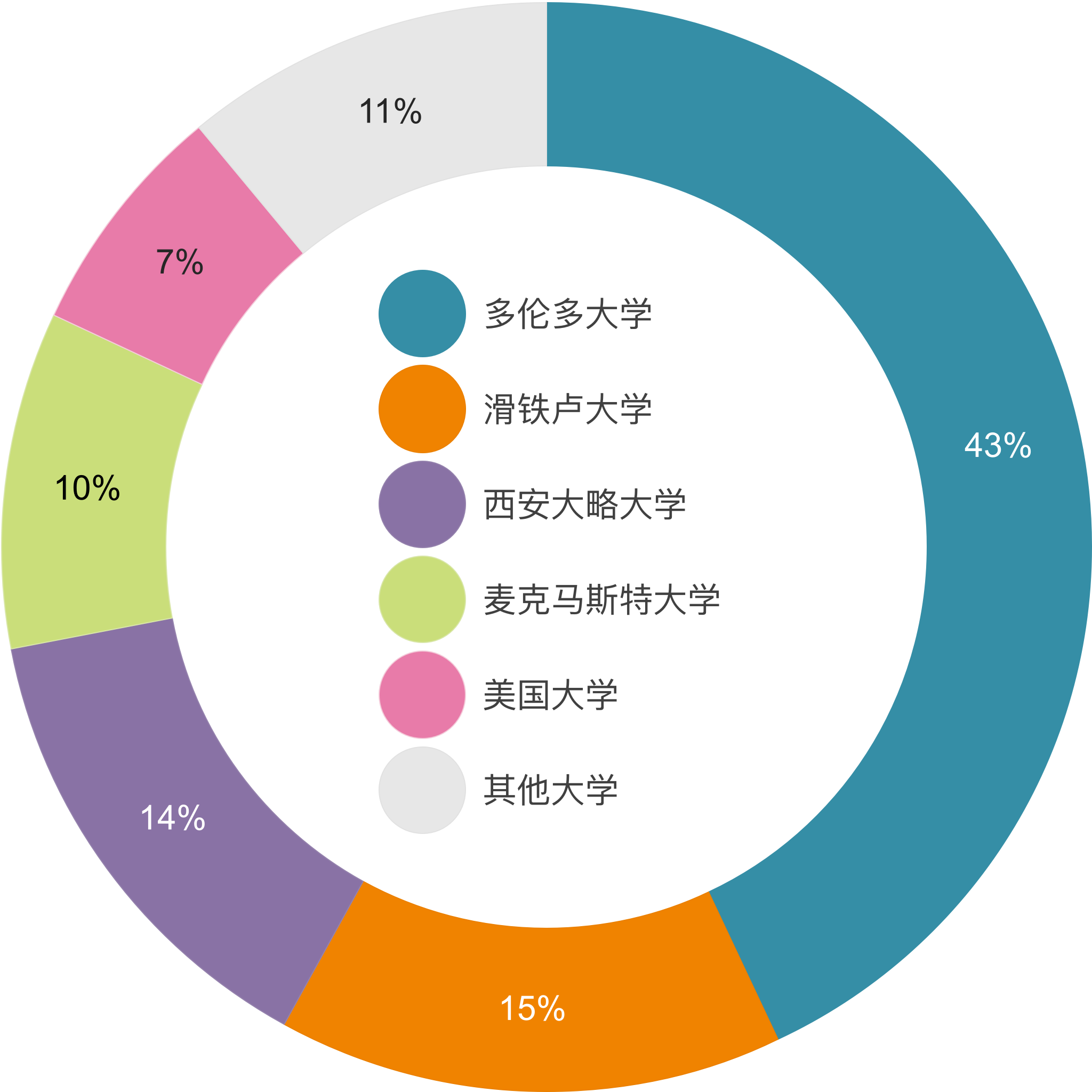 - offer豐富性:60%~80% 的學(xué)生都會收到一份多倫多大學(xué)的offer,滑鐵盧大學(xué)是第2多的,還有麥克馬斯特、西安大略、瑞爾森大學(xué)、UBC、SFU、皇后大學(xué)、渥太華大學(xué)、麥吉爾大學(xué)等