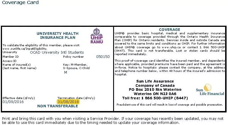 別小看這張紙,它的價(jià)值可是高達(dá)$612加元。法律規(guī)定,所有持Study Premit進(jìn)入加拿大學(xué)習(xí)的學(xué)生必須購(gòu)買醫(yī)療保險(xiǎn),所以不管是中學(xué)生還是大學(xué)生,開(kāi)學(xué)第一天都請(qǐng)記得去學(xué)校的Registrar Office(學(xué)生登記處)把自己的醫(yī)療保險(xiǎn)單打印出來(lái)。