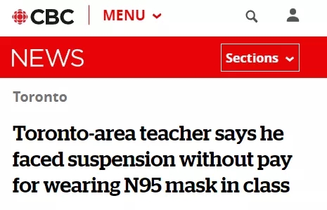 據(jù)CBC報(bào)道,大多倫多地區(qū)的三名選擇自行購(gòu)買并在教師里佩戴N95口罩的老師表示,由于他們沒(méi)有佩戴教育局發(fā)放的,防護(hù)性很差的藍(lán)色醫(yī)用口罩,所以現(xiàn)在被警告了。
