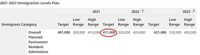 并且,自由黨政府仍致力于每年創(chuàng)造更多的移民記錄。預(yù)計(jì)2022年將有411,000名新移民,2023年將有421,000名新移民。目前加拿大每年新接受的人數(shù)遠(yuǎn)遠(yuǎn)超過其3850萬人口的1%。