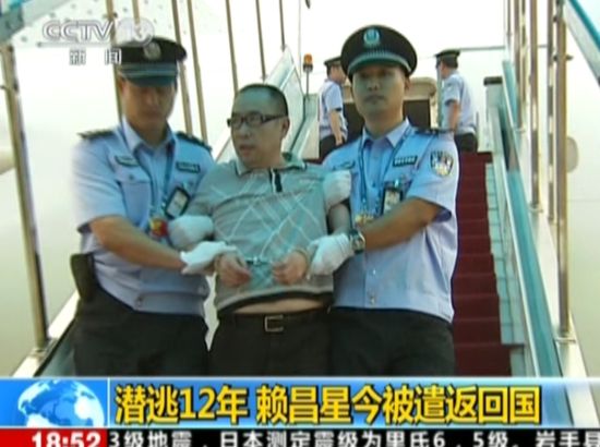 賴昌星抵達(dá)北京首都機(jī)場(chǎng)。(央視截屏)