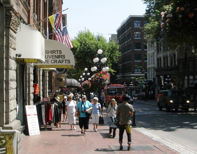 圖2:溫哥華狹窄的人行便道。注意圖中行駛的車(chē)輛離馬路牙子有多近。