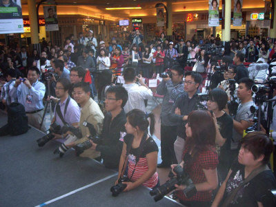Twins20日下午于萬錦廣場現(xiàn)身時,受到現(xiàn)場歌迷粉絲的歡迎,在隨后進(jìn)行的簽名會中,有民眾請兩人簽名合照,也有民眾將自己不到一歲的小孩子抱到兩人簽名會桌前合影。