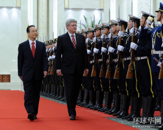 溫家寶舉行儀式歡迎加拿大總理哈珀訪華