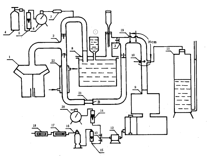 試驗(yàn)裝置按圖1 組裝,從鼓泡吸濕式飽和器 8 出口處到溫度計(jì) 10 處要用棉纖維保溫,從干球 溫度計(jì) 19 處到溫度計(jì) 10 處長度為20 c m ,保溫的管路總長為40~50 c m .