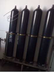 高壓儲氣系統(tǒng)包含4個容積為40L,使用壓力為31.5Mpa的鋼瓶組,4只鋼瓶分別有獨立的鋼瓶截止閥,每只截止閥都帶有安全閥,有鋼瓶支架等。所有的高壓鋼瓶均為符合中國壓力容器標準。高壓鋼瓶固定在鋼瓶支架上,之間采用不銹鋼管連接。管道采用喇叭口與其它管路連接,在現(xiàn)場安裝時,不需要燒電焊。