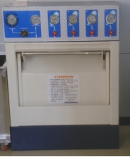 該充氣箱用于防止在充氣過程中因充氣接頭脫離、充氣管斷裂和氣瓶爆破等意外事故發(fā)生時對操作人員造成傷害。防護箱整體采用6毫米鋼板焊接而成,兩邊有平衡卸壓孔;箱門采用6毫米鋼板折彎成拱形結構,內襯3毫米折彎鋼板;開門自動切斷充氣回路,關門時自動打開充氣回路;采用跌落式關門自鎖裝置,自鎖十分靈活可靠,能有效防止充瓶時及氣瓶爆破時門被打開。氣瓶托架采用旋轉結構,配有氣動彈簧,開關箱門時能有效減輕操作人員勞動強度;充氣時氣瓶放在軟性塑料筒中,不會劃傷氣瓶表面。它是充氣維修室的主要設備。 ?????